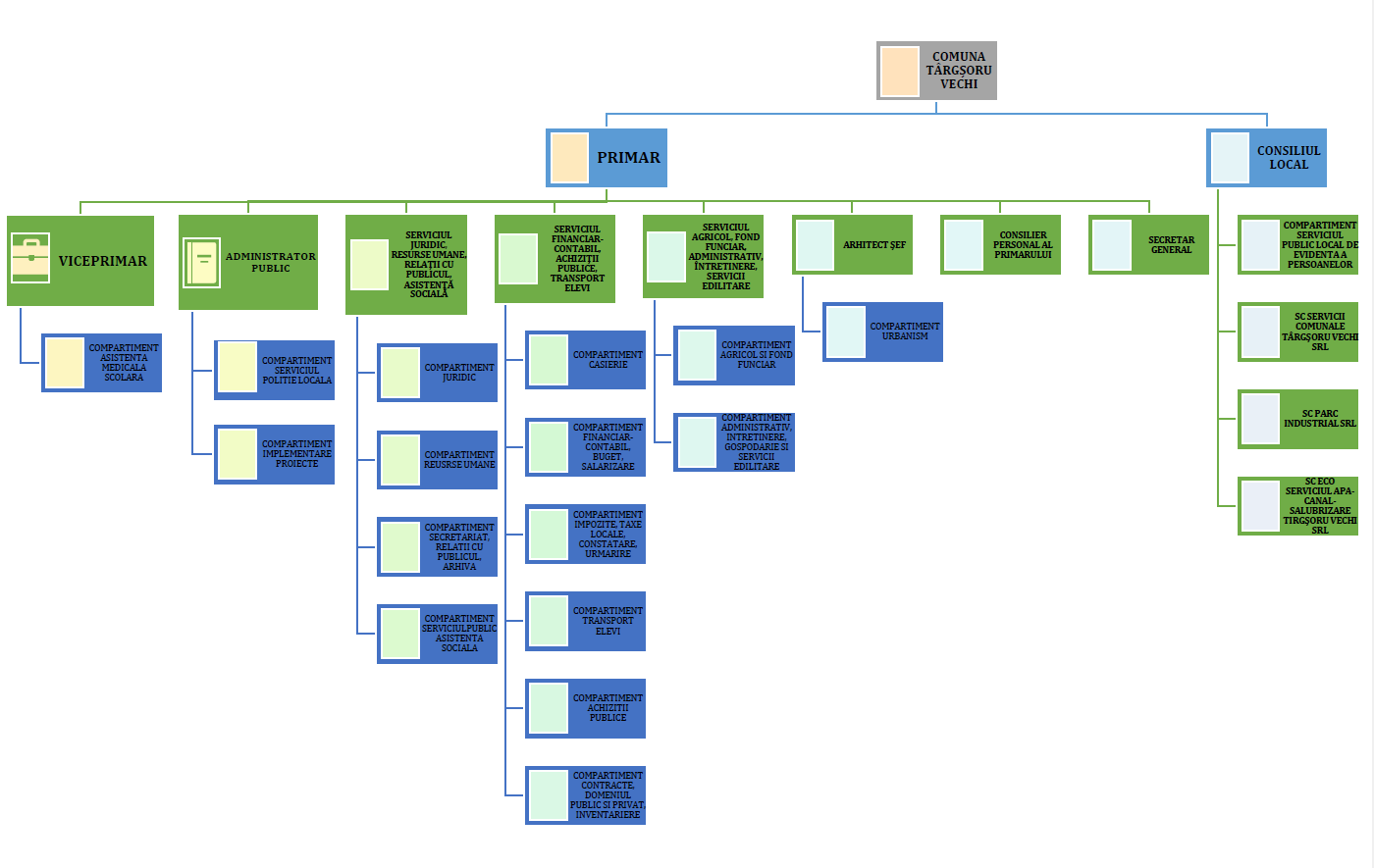 Organigrama instituției Primăriei Târgșoru Vechi este disponibilă